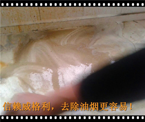 4、油污很快被分解,噴灑的地方都會形成黃黃的油漬,原來沉積在灶臺上的陳年油垢都很快的分解成液體狀的黃色油漬液體。