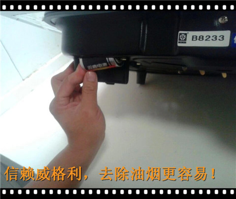 12、連接煙機進氣口和燃氣管道,和取下來的時候一樣,一定要擰緊,確保*不泄露。