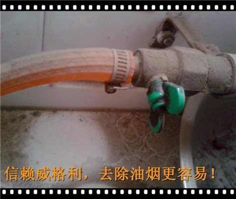 1、下面這是沒清洗的灶臺,把煙機去下來,煙機的進氣孔和燃氣的膠皮管是相連在一起的,去的時候要注意*把燃氣閥門關閉,避*泄露。