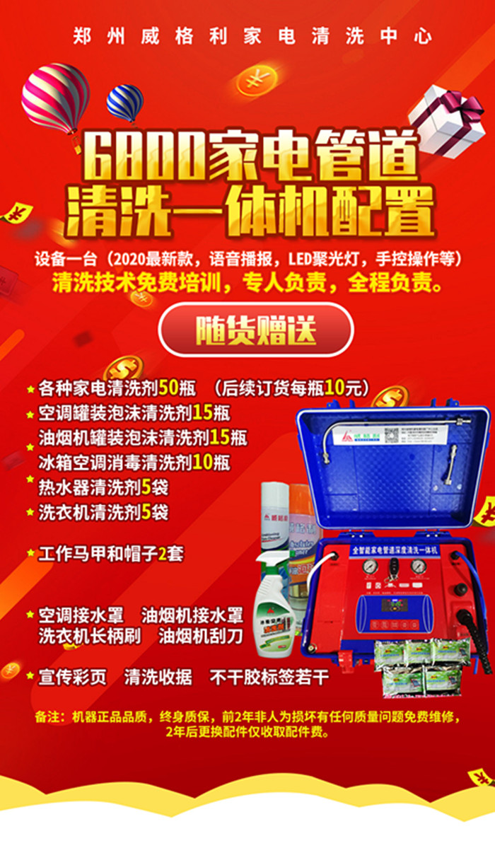 洗多多做家電清洗十多年來,每年都要跟這些層出不窮的所謂的家電清洗加盟總部斗智斗勇,爭取讓更多的人能夠明辨是非少花冤枉錢多辦事,可怎奈做加盟的憑借著轟轟烈烈的廣告宣傳,不斷的吸引和迷惑更多的人參與進去,搞的我們真正做實體生產研發生產銷售的在不同程度上身心俱疲。舉個例子,有個準客戶拿了一個兩萬九千八的加盟套餐給我們參考,我們一看就笑了,他們配置的這些產品和設備,在我們這里,*多值個一萬塊錢,也就是說加盟商多花了差不多兩萬塊錢的冤枉錢,怨誰呢?