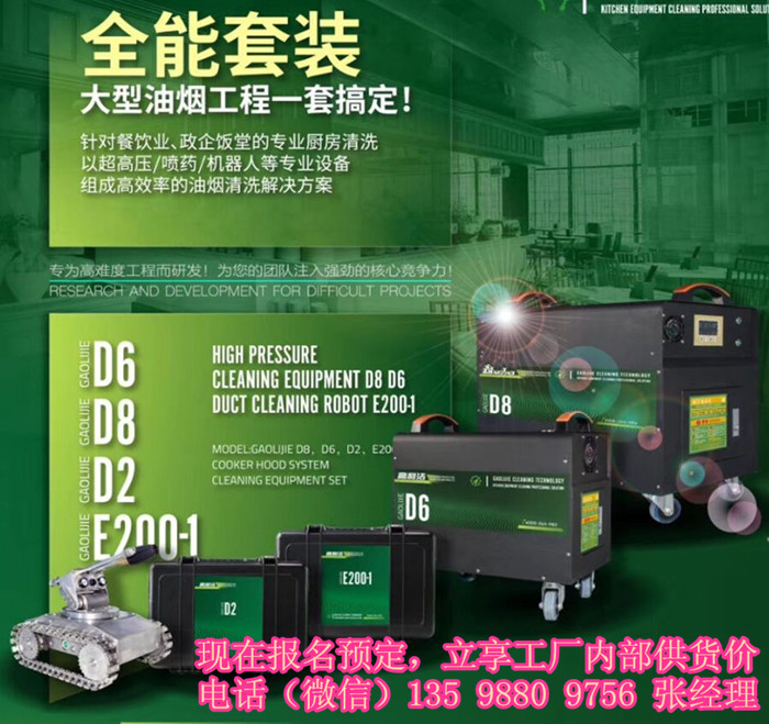 威格利大型油煙機清洗升*版套餐配置包括D8款的油煙機清洗機和一臺噴藥機。
