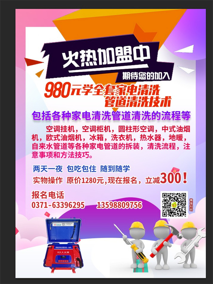 鄭州威格利家電清洗在家電清洗培訓中,采用的是理論指導與實機清洗演練相結合的課程教學模式,為培訓學員對煙機、空調、洗衣機、熱水器、太陽能等家電產品進行清洗實操講解教學,同時鄭州威格利家電清洗還把自己多年的家電清洗經驗,以及如何提升家電清洗的速度與效*,如何規避家電清洗中常見的問題,如何快速提高清洗師傅的家電清洗技能,在教學中也做了具體的、有價值的分享與指導。鄭州威格利家電清洗不*在家電清洗的教學培訓中取得了行業*,同時對如何打造*執行力與高清洗技能的清洗團隊,以及如何提升清洗團隊在運營管理效*與效益,如何傳、幫、帶新入門的清洗師傅,和如何用清洗服務帶動家電產品新*售的商業模式,都有自己*特、有效的落地經驗與執行方案。