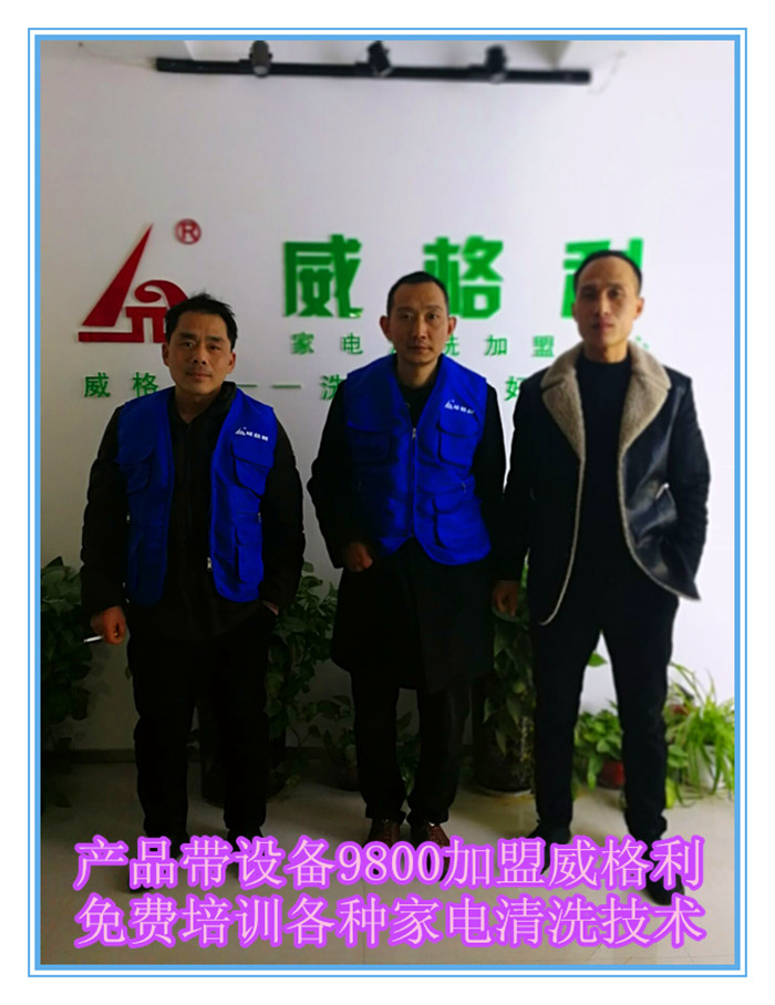 加盟家電清洗為什么要找威格利?很簡單:1.沒加盟費。家電清洗*能機一體機+蒸汽臭氧消毒機+300瓶家電清洗劑,只要9800元就算加盟。2.*的清洗技術,包括各種家電清洗技術,自來水管道清洗地暖清洗大型油煙機清洗技術,統統*費培訓。。3.不加盟的,只想買產品或者設備,可以的!各種家電清洗設備管道清洗設備大型油煙機中央空調清洗設備都有,*品質,薄利多銷,*程售后支持,買貴了退你雙倍差價,就這么簡單?。?!